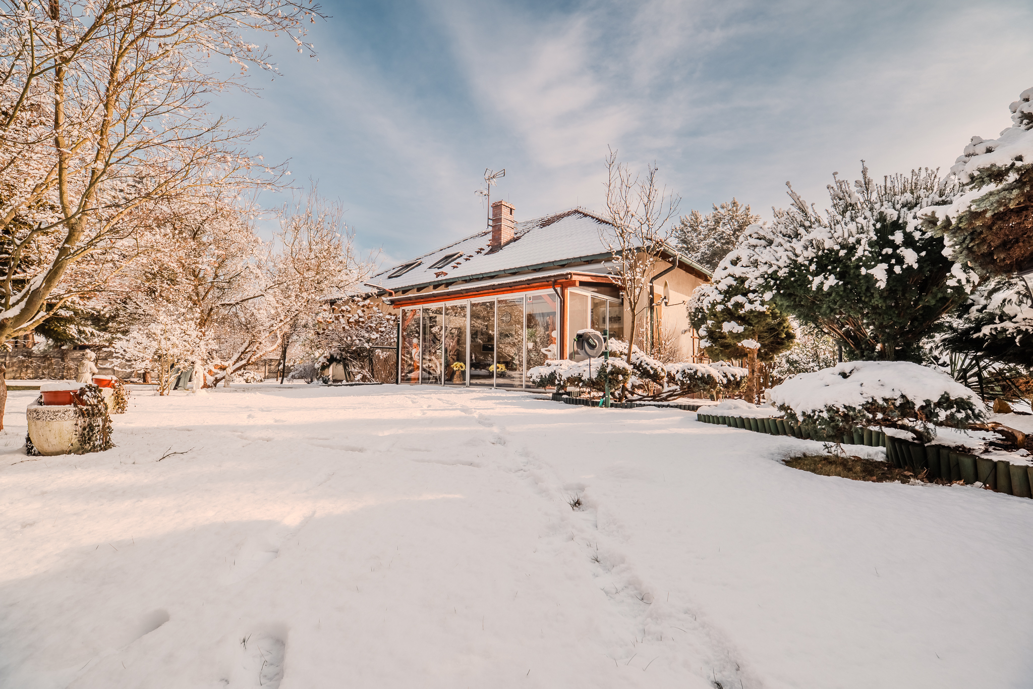 Na terenie posesji znajduje się staw, altana zimowa i letnia, dwa w pełni wyposażone składziki na narzędzia ogrodowe oraz nowoczesna oczyszczalnia ścieków. Działka jest bardzo zielona, zadbana i nie wymaga dodatkowych prac pielęgnacyjnych.